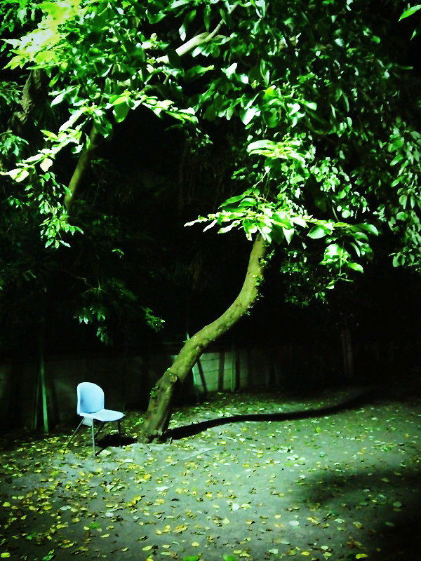 しかし、折りたたみでもなく、重そうな椅子だし。夜も置きっぱなしというのは変なんですよね。